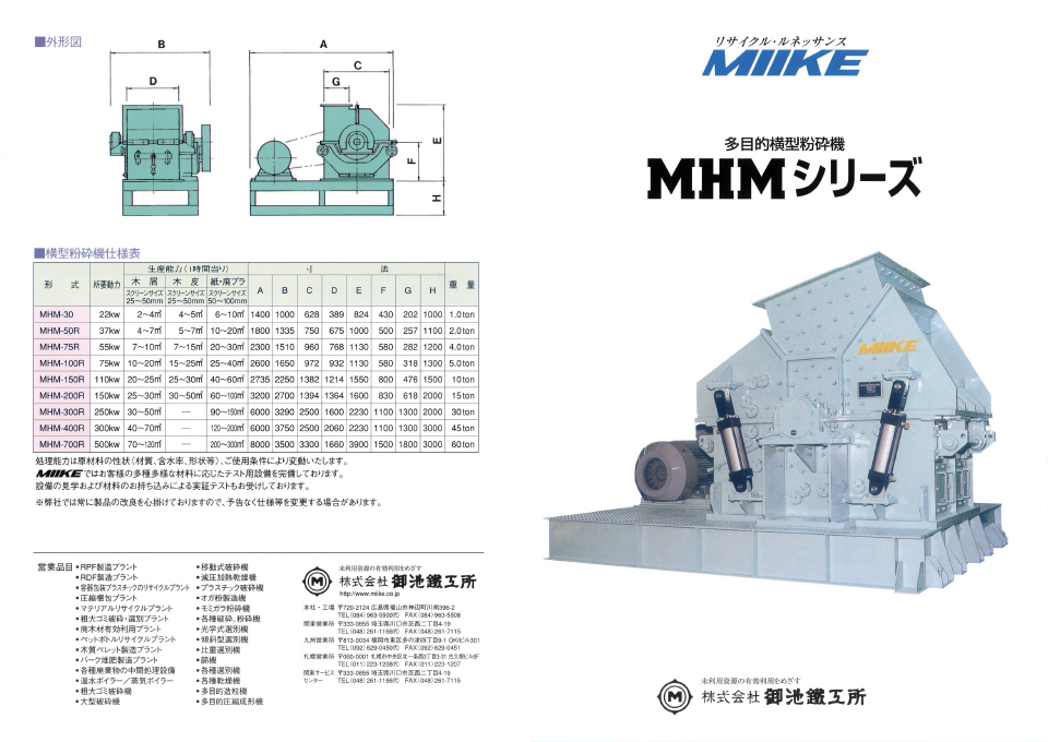 MIIKEでは、お客様の使用目的、設置場所、コスト等、様々なニーズに合わせたベストな設備を提案・製作。合理的な設計のもと、最新鋭の工作機械を駆使し、高精度な機械加工を施すことにより、高性能・高耐久性を実現しました。また、お客様の多種多様なご要望にお応えするためにテスト工場を常設しております。破砕機はもちろん、粉砕機・選別機・乾燥機・成形機といった一連の設備を完備しております。mvsr