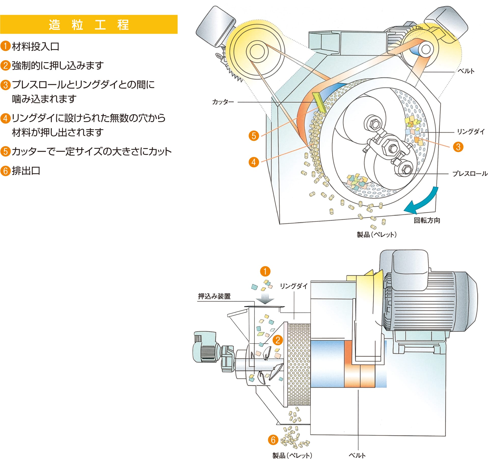 廃棄物を資源に変える多目的造粒機で より効率的な未利用資源のリサイクル。 多種多様な材料を直径3〜20ミリまで、 ご希望サイズのペレットに造粒することができます。
